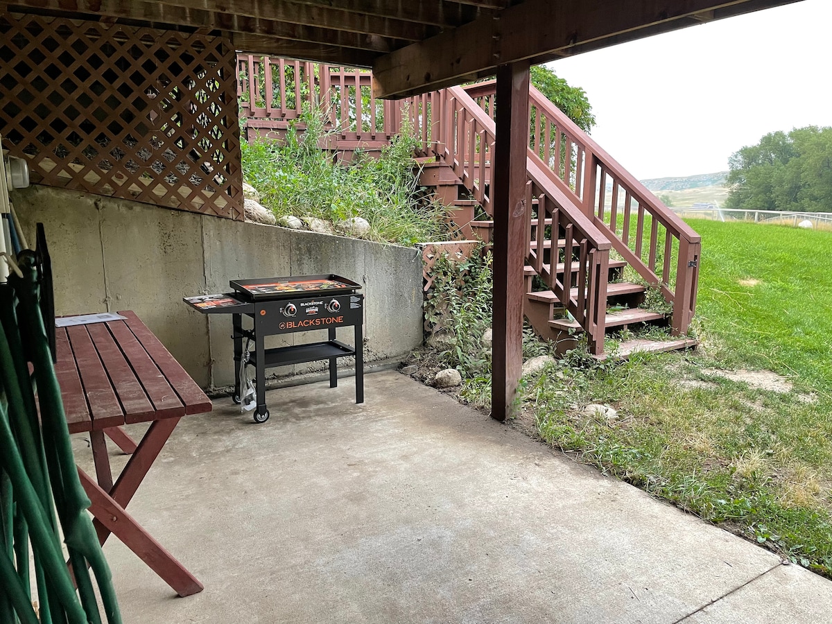 Goditi il tuo soggiorno in questo tranquillo appartamento appena ristrutturato lungo Goose Creek, in un quartiere privato. Il Buffalo Hideout dispone di un cortile recintato con patio, patio anteriore che si affaccia sul torrente e sulla pista ciclabile, cucina completa, lavanderia privata e due letti matrimoniali. Sheridan è una città occidentale e ci impegniamo a creare un'esperienza occidentale unica con decorazioni autentiche. A pochi minuti dal centro e comodamente dalla I-90.