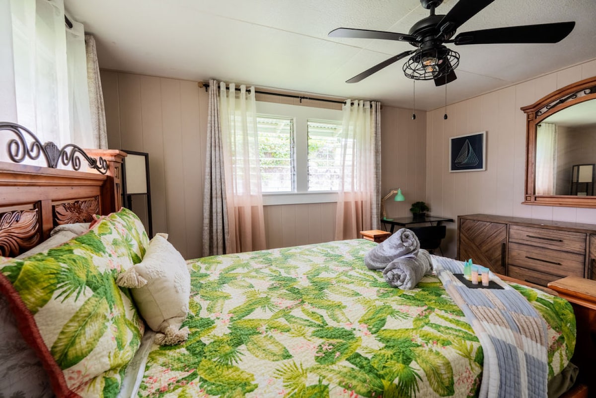Relax and enjoy our pleasant and welcoming, well- equipped home away from home!! Here you will find real Hawaiian flair within a cute, renovated plantation style home. Location is Prime- 5 min to the Beach & Parks, 3 min to the Airport & 7 min to Downtown. Our private house features 3 separate bedrooms: perfect for larger groups and families! Easy Self Check-in! Our clean comfortable home will welcome you with Aloha! Spend days exploring waterfalls or enjoy a trip to the Volcano National Park!!