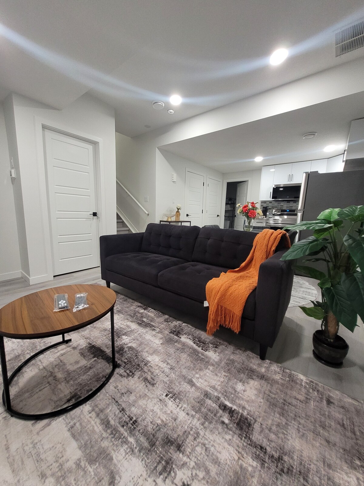 Our newly-renovated and romantic NYC loft-inspired basement suite offers over 1000 square feet of luxurious living space. With its high ceilings, floor-to-ceiling glass walls and French doors, and cozy in-floor heating, you'll feel like you're in a real loft. The high-end kitchen and bathroom add a touch of sophistication, and the 90s Simpsons arcade game provides hours of entertainment. Book your stay with us and experience the luxury and comfort of our suite.