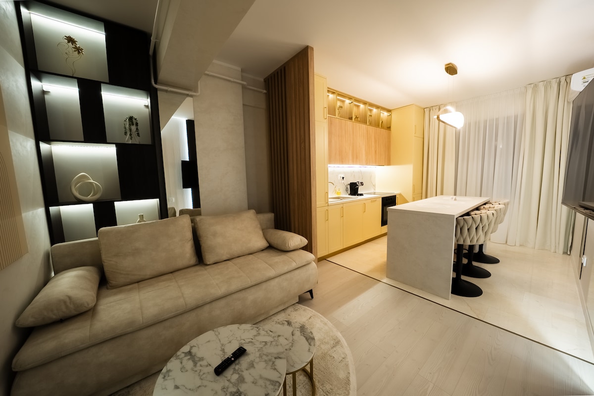 More than just accommodation. A luxury experience in Copou. Royaluxé by Thomas is a premium apartment located in the exclusive Royal Town complex, designed for guests who appreciate genuine comfort and modern design. Finished to a high standard, featuring marble finishes in the kitchen and bathroom, an elegant living area with a sofa bed, and a bedroom offering hotel-level comfort. Royaluxé by Thomas – for guests who appreciate high standards.