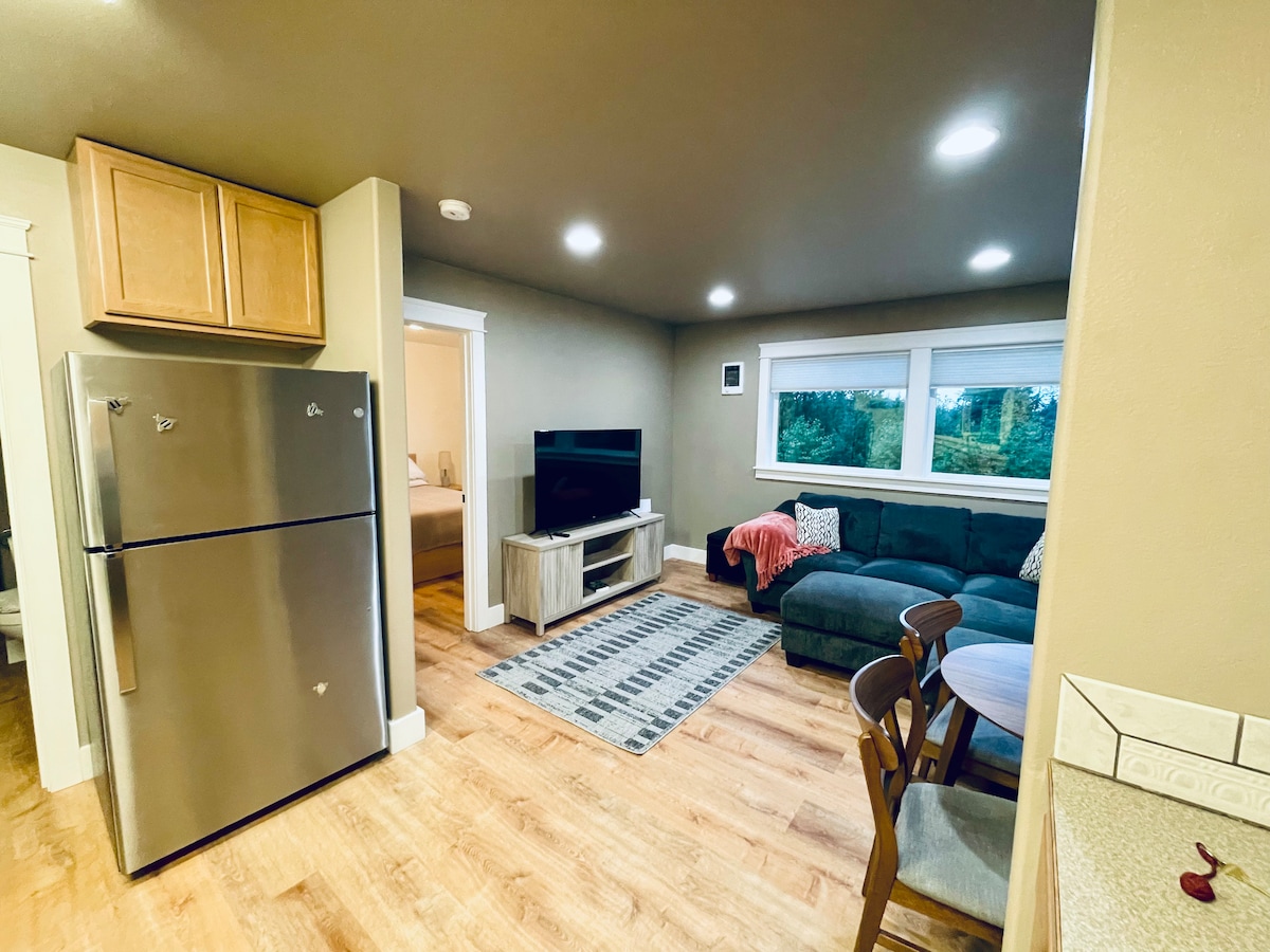 Questo spazioso appartamento con 1 camera da letto è completamente attrezzato per il tuo soggiorno. Perfetto sia per i visitatori che per i viaggiatori intra-statali. Goditi questa comoda posizione a pochi passi da sentieri locali, fermate degli autobus, scuole, campi sportivi, negozi di alimentari e porti. A tre minuti di auto dal centro di Sitka. Questo appartamento completamente attrezzato, con wifi gratuito, lavatrice/asciugatrice e un cortile pieno di cespugli di mirtilli e mirtilli rossi, è pronto per il tuo soggiorno avventuroso nella bellissima Sitka, in Alaska!