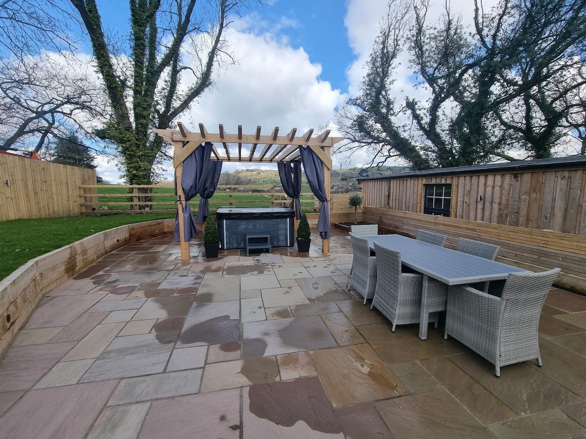 Un bellissimo chalet con 3 camere da letto in una posizione rurale circondata dal nostro bosco, vasca idromassaggio privata con Bluetooth, ampia zona pranzo all'aperto dotata di riscaldamento da esterno, mobili da giardino su ogni lato della proprietà, viste panoramiche sulla Nidderdale Valley. Ascolta il suono tranquillo del flusso naturale dell'acqua dal ruscello mentre ti addormenti. Wifi illimitato super veloce in fibra, Smart TV in ogni stanza, cucina completamente attrezzata, soggiorno e sala da pranzo open space. Animali ben educati sono i benvenuti.