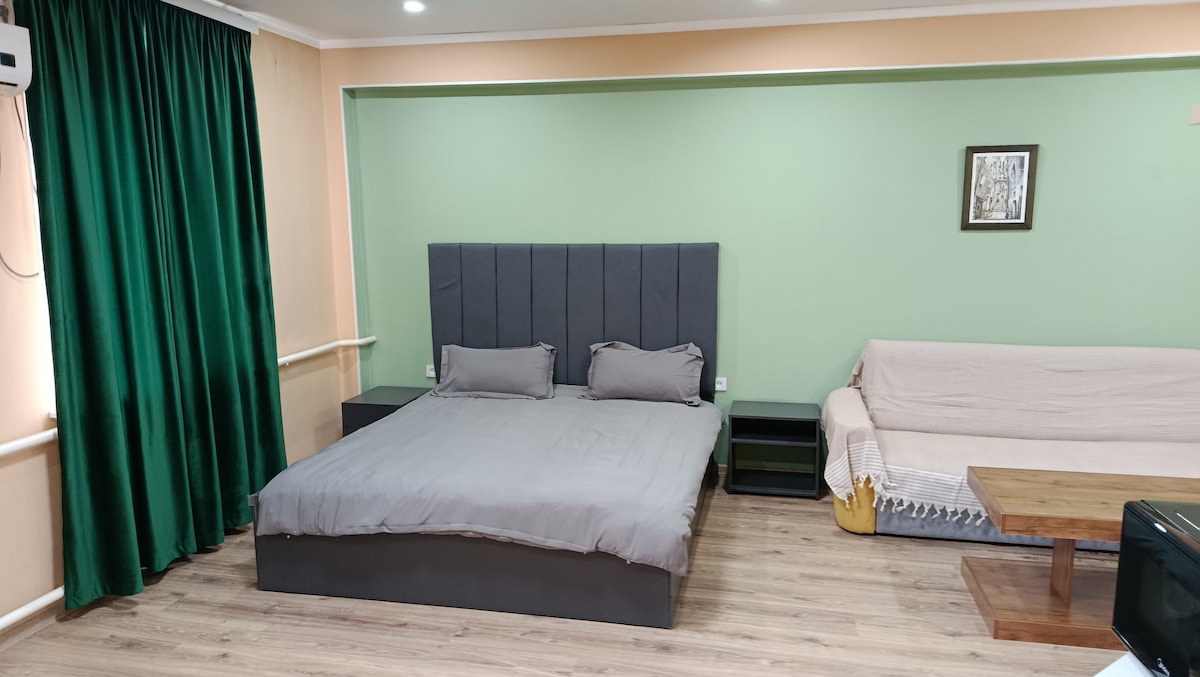 Ciao, Eva at Home è disponibile, siamo un piccolo e accogliente hotel in montagna. Bishkek. Abbiamo aperto a dicembre 2022., in hotel troverai una ristrutturazione fresca, mobili nuovi, biancheria da letto e asciugamani Abbiamo tutto il necessario per un soggiorno confortevole: 1. Internet molto veloce 100mb/s 2. Letti comodi e larghi 90 cm. 3. Macchina del caffè, bollitore, forno a microonde e frigorifero 4. Lavatrice e asciugatrice 5. Asciugamani e accappatoi puliti 6. Prodotti per l'igiene della doccia 7. Filtro dell'acqua potabile 8. Tè e snack