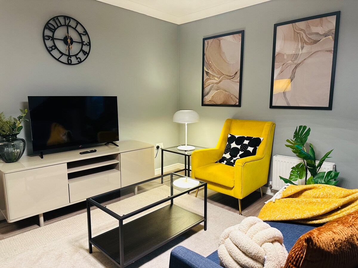 ★ Splendido appartamento con 2 camere da letto nel centro della città: lusso raro, parcheggio gratuito e affascinante balcone ★ Posizione ★ privilegiata: a pochi metri dall'Hydro e dal SEC Exhibition Centre. A 2 minuti a piedi da Argyle St. e a 5-10 minuti a piedi dal centro città ★ Banda ★ larga Sky ultraveloce: oltre 105 Mbps per una connettività senza interruzioni ★ ★ Intrattenimento coinvolgente: Smart TV da 55" nel soggiorno, da 32" nella camera da letto principale★ ★ Ideale per lavorare a distanza: scrivania spaziosa per la produttività ★ Servizi ★ curati: caffè, tè, zucchero, articoli da toeletta e morbidi asciugamani★