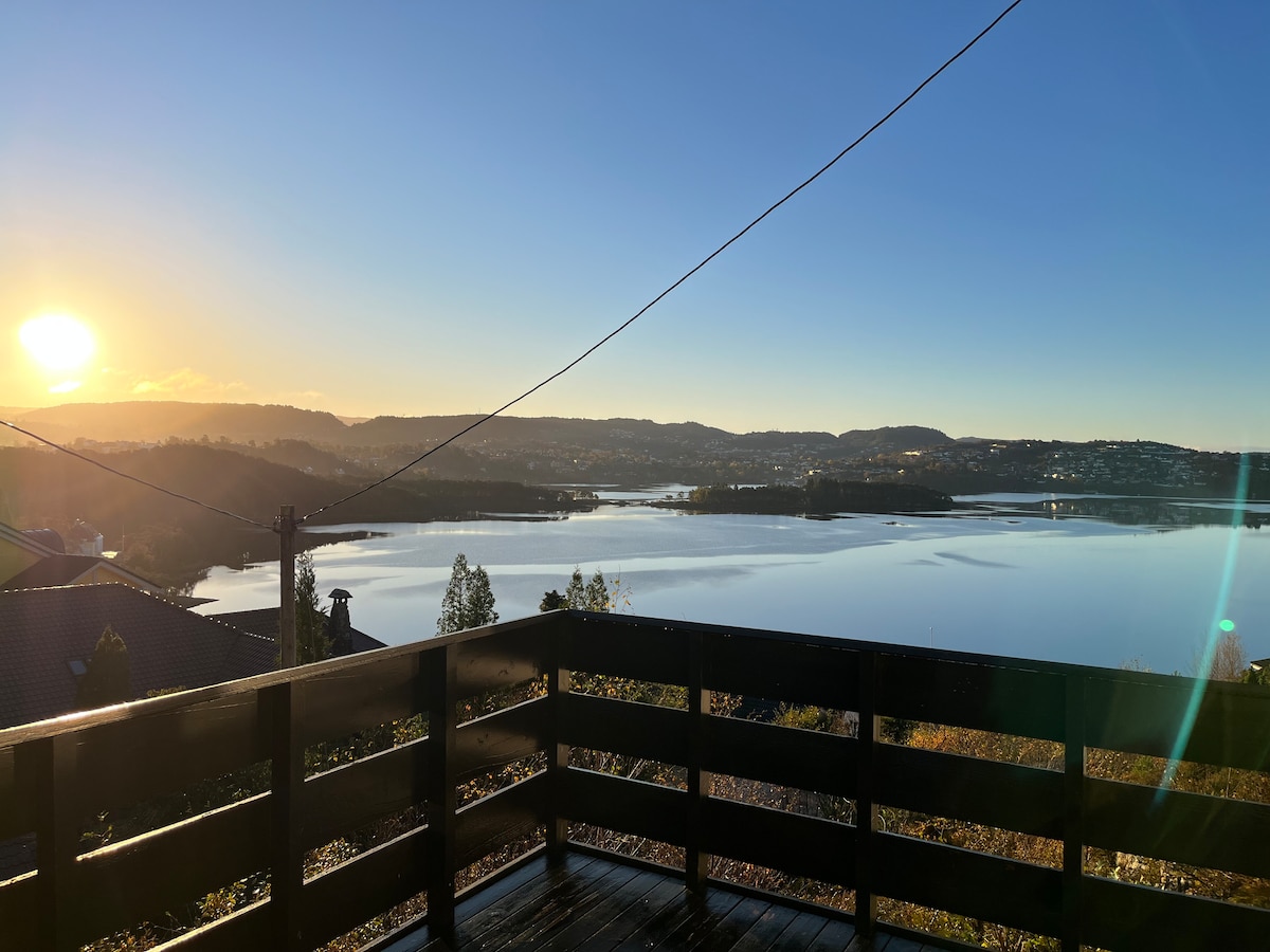 Ottimo appartamento di 60 m2. Si trova a 15 minuti dal centro di Bergen e a 10 minuti di auto dall'aeroporto. Buoni collegamenti in autobus con il centro città, a 800 metri. Puoi sicuramente spostarti con i mezzi pubblici, tuttavia un'auto a noleggio sarà normalmente preferibile a noleggio. L'appartamento è dotato di soggiorno con divano letto matrimoniale, cucina, 2 camere con letti matrimoniali, bagno, ingresso indipendente, posto auto e terrazzo privato con fantastica vista mare e sole serale.