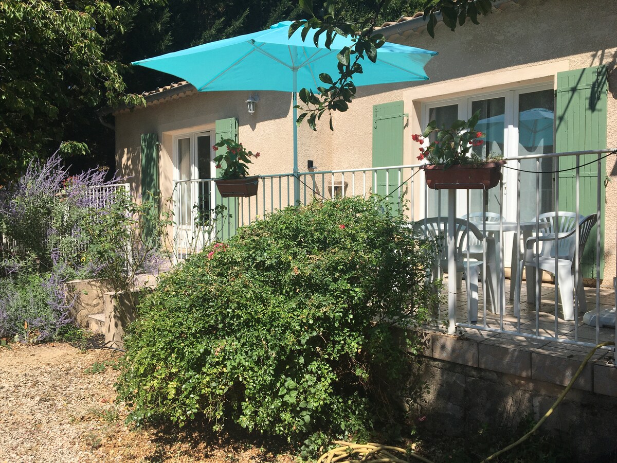 Rilassatevi in questo alloggio tranquillo ed elegante. Con vista sulle montagne e sulla piscina appena sotto, tutto è perfettamente attrezzato per un soggiorno per 2 persone. Il cottage è dotato di 2 letti singoli, cucina e bagno. All'esterno, salotto e tavolo da giardino sulla grande terrazza in legno. Il parcheggio privato è proprio sopra l'ingresso. Piscina (dalle 11:00 alle 19:00), garage per biciclette custodito e campo da bocce sono accessibili gratuitamente.