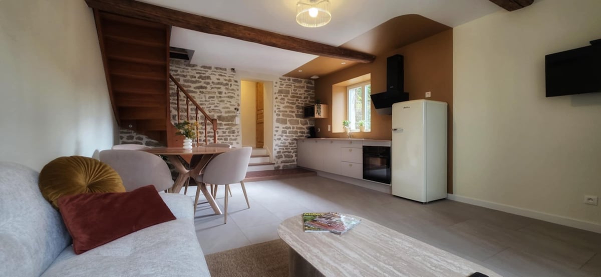 Séjournez dans un ancien caveau de 70 m² entièrement rénové, où charme de la pierre et modernité se rencontrent. Profitez d’une grande pièce à vivre spacieuse et conviviale, parfaite pour vous détendre. La chambre, élégante et raffinée, s’ouvre sur une vaste salle de bain, offrant un confort unique. Idéalement situé pour découvrir Dijon, la route des Grands Crus et la Cité de la Gastronomie, ce logement atypique vous promet une expérience authentique et inoubliable au cœur de la Bourgogne