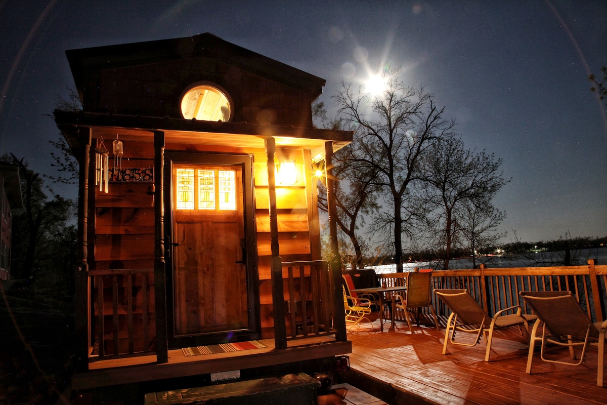 Bless This Tiny House è una minicasa di 25 metri quadrati parcheggiata accanto a un'enorme e bellissima terrazza con vista sul lago! Porta i kayak sul lago! Rilassati sull'amaca con un buon libro. Griglia hamburger e rilassati vicino al fuoco mentre il sole tramonta! La Tiny è particolarmente accogliente in inverno! Stacca la spina e gioca a carte nel loft per il tempo libero! L'ambiente perfetto per un rifugio di coppia! Minimalismo e appagamento! Lasciati ispirare dalla bellezza della creazione di Dio!