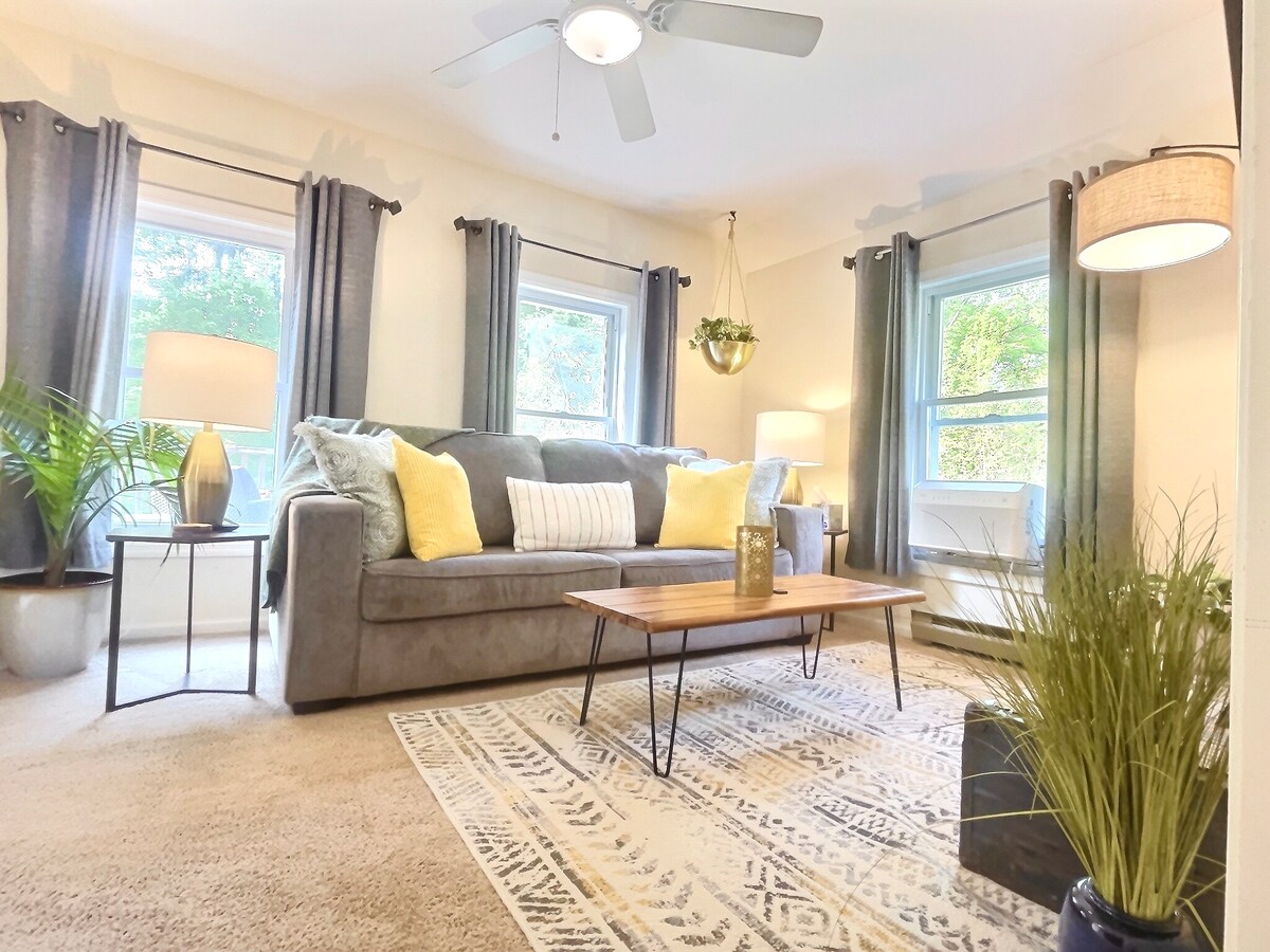 Chalet privato completamente ristrutturato con finiture di lusso e splendide viste sul fiume Hudson. Tutti i comfort, tra cui cucina completa, ampio soggiorno, bagno elegante e camera da letto accogliente, oltre a un focolare e un ampio patio da cui osservare le aquile. Immerso in un angolo boscoso della proprietà del proprietario, ma completamente indipendente, con vialetto separato, parcheggio e cortile recintato per la privacy. A pochi minuti da negozi e ristoranti di Kingston, nonché da escursioni e natura di livello mondiale.