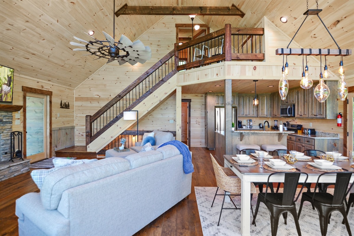 Salva nei preferiti, clicca sul <3 nell'angolo in alto! >Splendida vista sulle montagne Blue Ridge >Vista dalla vasca idromassaggio e dal balcone al piano terra >Può ospitare comodamente 6 persone >A 10 minuti dal centro di Blue Ridge >Tavolo da biliardo, tavolo da shuffleboard, dama >2 camini interni e 1 esterno >Griglia per barbecue >Macchina per caffè americano e Keurig >Lavatrice e asciugatrice >Patio schermato con divano situato accanto al caminetto. >5 TV LG con streaming. Accedi a Netlfix, Hulu, ecc. >Forniture per 3 giorni (carta igienica, sacchetti della spazzatura, cialde, ecc.).