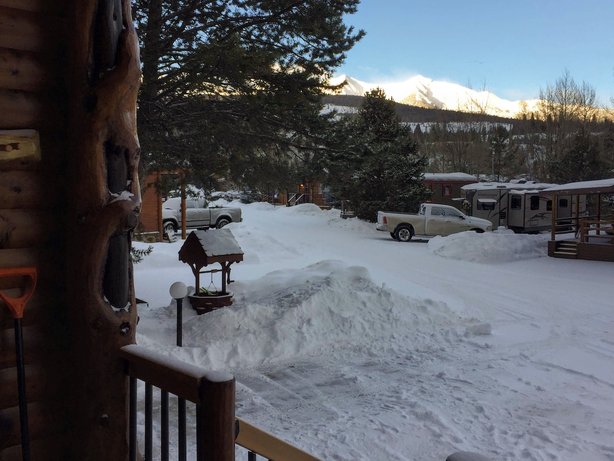 Questo chalet adorabile e ristrutturato di recente può ospitare 4+. 1 camera da letto con letto matrimoniale e TV. La camera in Colorado è un soggiorno separato con letto/divano letto queen con 2 sedie, caminetto e TV a schermo piatto. 1 bagno completo. Lavatrice/asciugatrice nell'unità e nella lavastoviglie. Cucina completa e sistema idrico purificato. Rec Center con piscina coperta, 2 vasche idromassaggio e altro! Navetta gratuita per Breck e le città vicine. Splendidi panorami sulle montagne e sentieri escursionistici/ciclabili a pochi passi. Sciare a pochi minuti di distanza. port-a-crib in unità