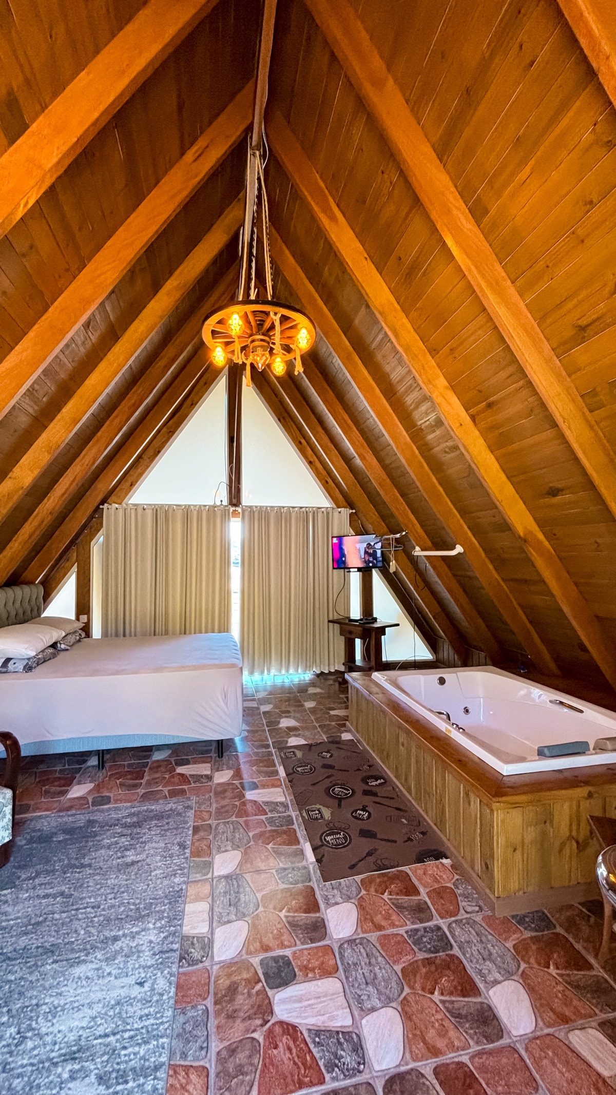 Rilassati in questo spazio tranquillo ed elegante. Una capanna in mezzo alla natura con una vista incredibile sulla cima della montagna, con molta privacy, comfort e lusso. Un luogo perfetto per le coppie in cerca di un rifugio accogliente e romantico. Contiene una vasca idromassaggio per due persone e una vista sulle montagne. Cucina completa attrezzata con piano cottura, forno a microonde, minibar, pentola per fonduta. Camera con letto matrimoniale con biancheria da letto di alta qualità. @chaleriverland
