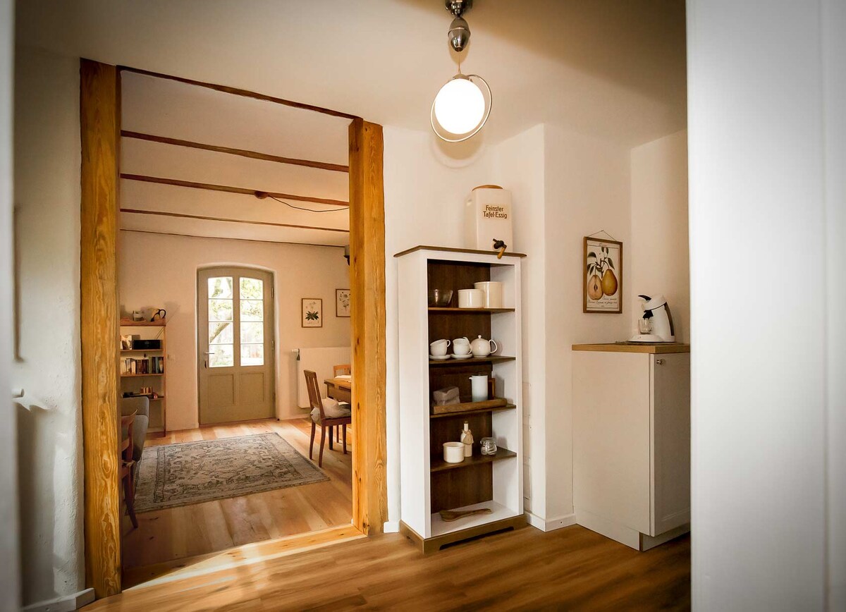 Volete prendervi una pausa dalla città e trascorrere le vacanze in Germania nel verde? Siete alla ricerca di relax e tranquillità in un ambiente di villaggio, immersi nella natura? Allora potete rilassarvi da noi per un paio di giorni, settimane o anche solo per la prossima tappa in bicicletta o a piedi. Gli appartamenti si trovano al 1 ° piano della "Vecchia Scuola" protetta e sono arredati in modo accogliente e moderno, dotati di un angolo cottura, Wi-Fi e TV.