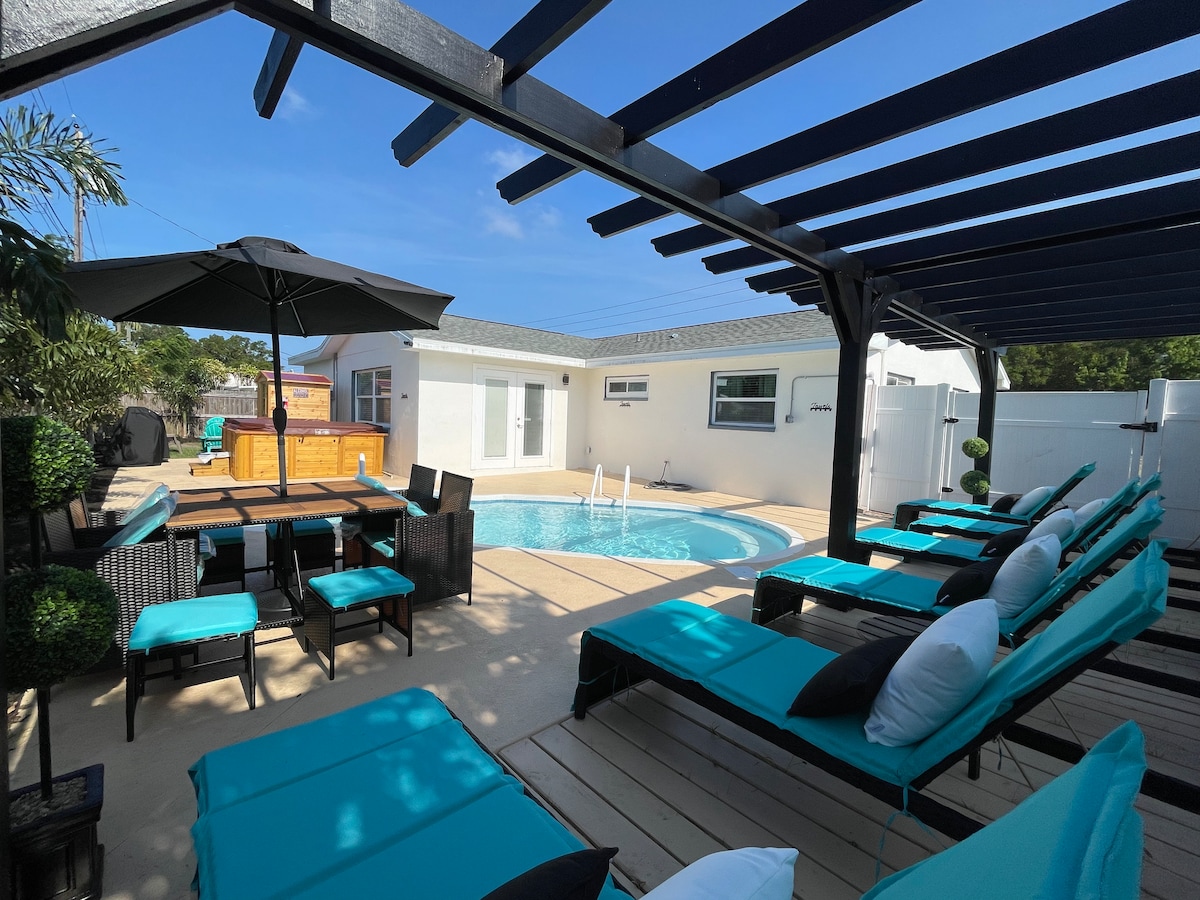 Crea dei ricordi speciali in questa casa unica e adatta alle famiglie! La tua casa vacanze ha appena completato la ristrutturazione. Tutto ( e intendiamo dire tutto ) è nuovo! Rilassati e disintossicati nella RARA SAUNA per 4 persone! Goditi l'ENORME VASCA IDROMASSAGGIO per 6 persone. Goditi il ricco sole della Florida a bordo piscina sotto il grande pergolato in stile resort di 27 piedi. A soli 5 km dalla spiaggia più vicina 🏖️ A 90 metri dal Pinellas Trail! WI-FI PIÙ VELOCE DISPONIBILE -668MBP Hai una domanda? Inviami un messaggio!