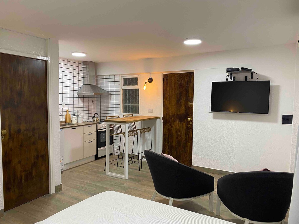 Un luogo unico. Uno spazio da abitare nella sua interezza. A 13 km dalla città di Mendoza e all'interno del circuito "Per le strade del vino". Con uscita indipendente, garage coperto esclusivo, ottimo Wi-Fi, letto matrimoniale, bagno privato, TV, frigorifero, forno elettrico, microonde, bollitore elettrico, biancheria letto e bagno, teli piscina. Incorporiamo cassette di sicurezza e split. Continuiamo ad aggiungere comfort per rendere indimenticabile il tuo riposo nel nostro spazio.