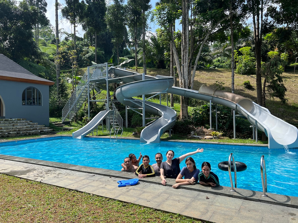 La nostra villa è situata all'interno di una tenuta molto grande dove gli occupanti possono godere di paesaggi naturali come la foresta con alberi alti e il fiume in streaming. Questa è la scelta perfetta per una breve vacanza in una zona remota con aria fresca e fresca. L'altitudine è di 1000 metri. Temperatura 15-23 Celcius. Anche se il complesso è appartato, non è lontano da ristoranti, caffetterie e supermercati. Puoi passeggiare o fare jogging nel complesso, nuotare o giocare a tennis, goderti la vista degli alberi e delle luci della città dalla nostra villa.