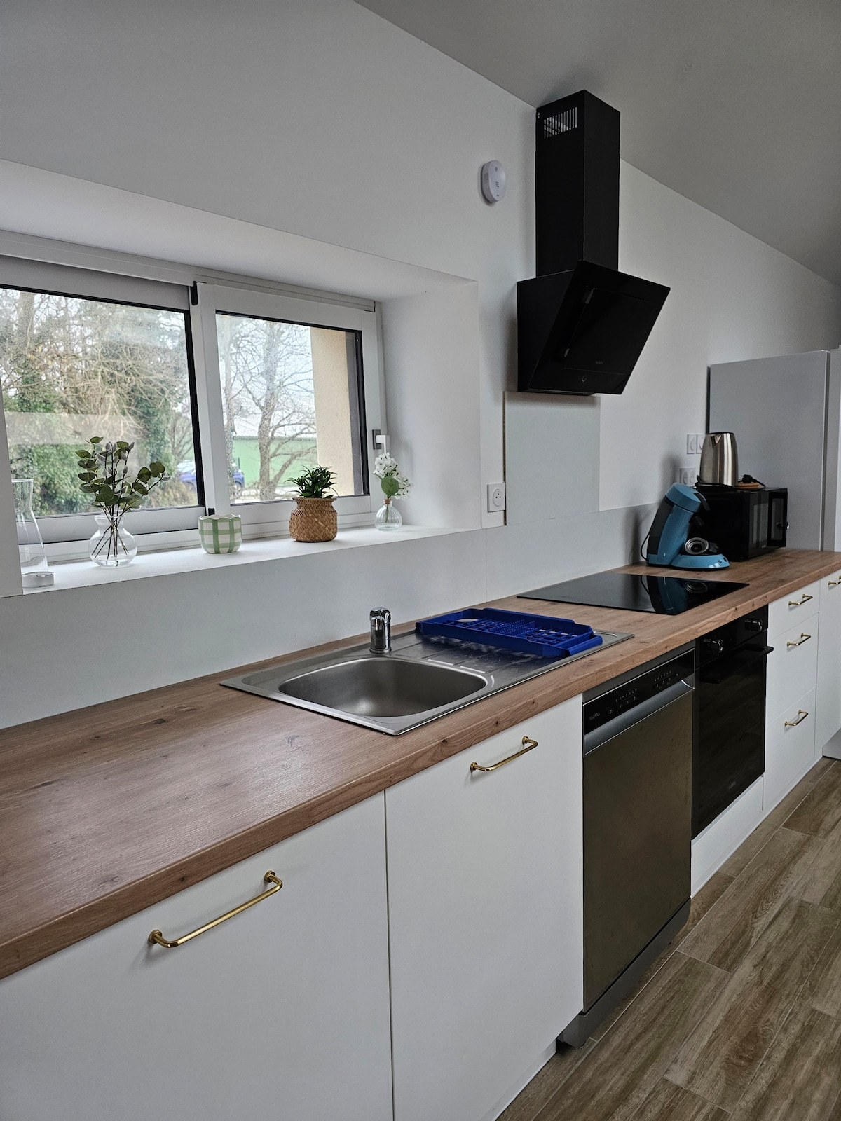 Benvenuti nel nostro cottage unico, immerso nella natura, ideale per una vacanza rilassante in campagna, per 4 persone. Due camere da letto, cucina attrezzata, terrazza privata. Accesso al giardino comune con area benessere: vasca idromassaggio, sauna, barbecue. Wifi, TV, lavatrice, parcheggio gratuito. Possibilità di affittare un secondo alloggio in loco per ospitare fino a 8 persone. Stazione di ricarica rapida elettrica in loco per il vostro veicolo. Il nostro cottage è il luogo ideale per una pausa rigenerante.