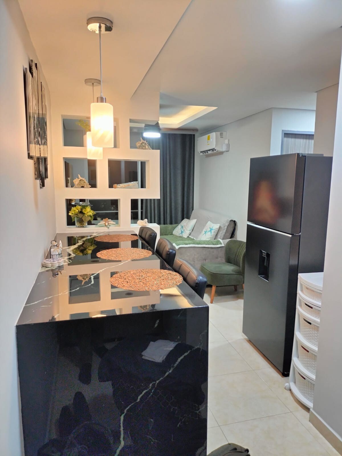 Goditi un elegante appartamento fronte oceano a Bocagrande, con vista diretta sul Mar dei Caraibi. Dispone di 2 camere da letto, 2 bagni, un ampio soggiorno con divano letto, una cucina completamente attrezzata, WiFi ad alta velocità e un balcone privato con sedia sospesa. A/C in tutte le aree. Perfetto per famiglie e gruppi in cerca di comfort, posizione privilegiata e accesso immediato alla spiaggia. Tutto è pensato per un soggiorno moderno, pratico e rilassante.