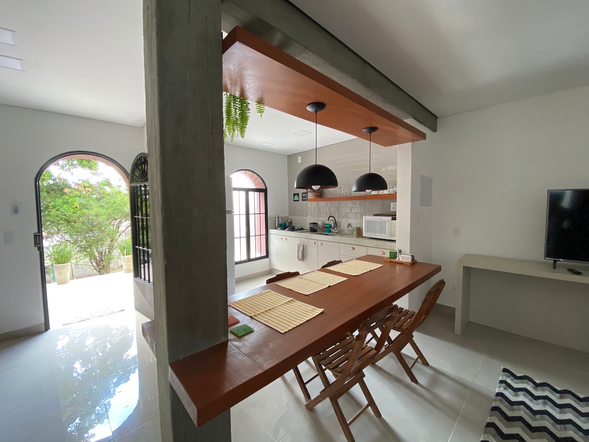 A casa é simples e aconchegante perfeita para quem procura tranquilidade e descanso para passar alguns dias ou se estiver só de passagem, a casa conta com um quarto com uma cama de casal, uma de solteiro um colchão de casal e dois de solteiro, sala e cozinha integradas equipada com geladeira, cooktop, forno elétrico e micro-ondas. Na área externa temos um ofurô com hidro ideal para relaxar, uma varanda com mesa e cadeiras e uma churrasqueira pequena que não vai te deixar na mão.