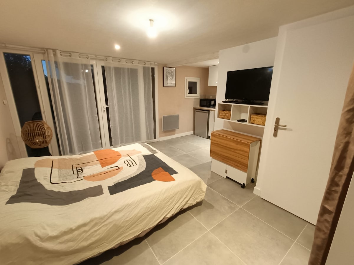 Monolocale "Ambre" Rilassatevi in questo alloggio tranquillo ed elegante in campagna. Monolocale al piano terra in un casale ristrutturato. Piccola terrazza e accesso al giardino. 7 minuti di auto dalla tangenziale o dal centro della città. Ampio parcheggio proprio davanti alla casa. Aria condizionata reversibile. Letto comodo da 160 Bagno separato con una doccia spaziosa. Smart TV Macchina per il caffè Senséo. Per la vostra sicurezza la terrazza comune, il parcheggio e il giardino sono sotto videosorveglianza. Nessun costo di pulizia