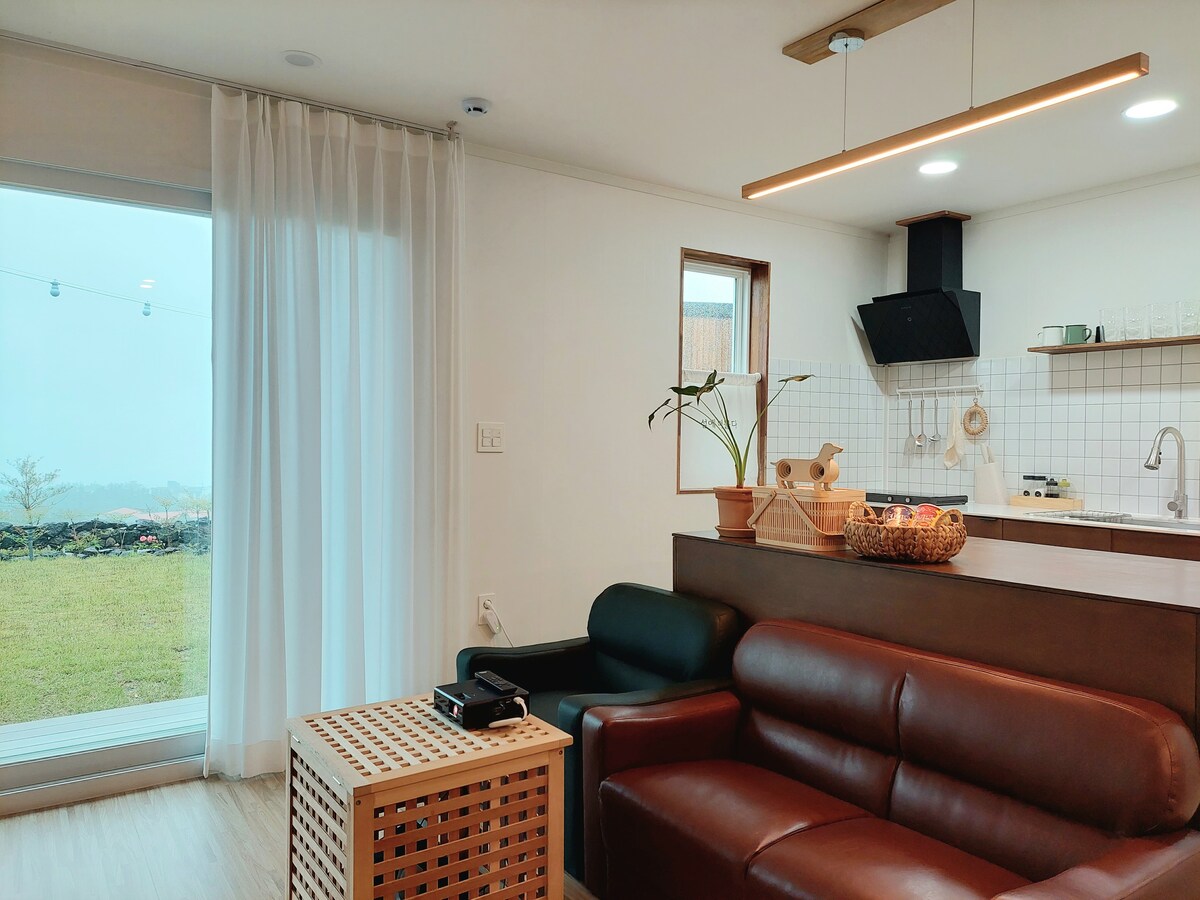 È una dependance di una casa di campagna situata a Seonheul, Jocheon-eup, dove c'è una foresta verde. È un tranquillo villaggio rurale adiacente al Giardino Camellia e al Geomun Oreum, con la spiaggia di Hamdeok sottostante. Si può godere della vista del monte Halla e a 4 minuti a piedi dalla struttura ci sono famosi ristoranti di cucina locale e caffè per il brunch, minimarket e fermate degli autobus, C'è un sentiero di Gotjawal che richiede più di un'ora per essere percorso, La camera da letto è a più piani, è confortevole e profuma di cipresso, per cui potrete riposarvi comodamente.
