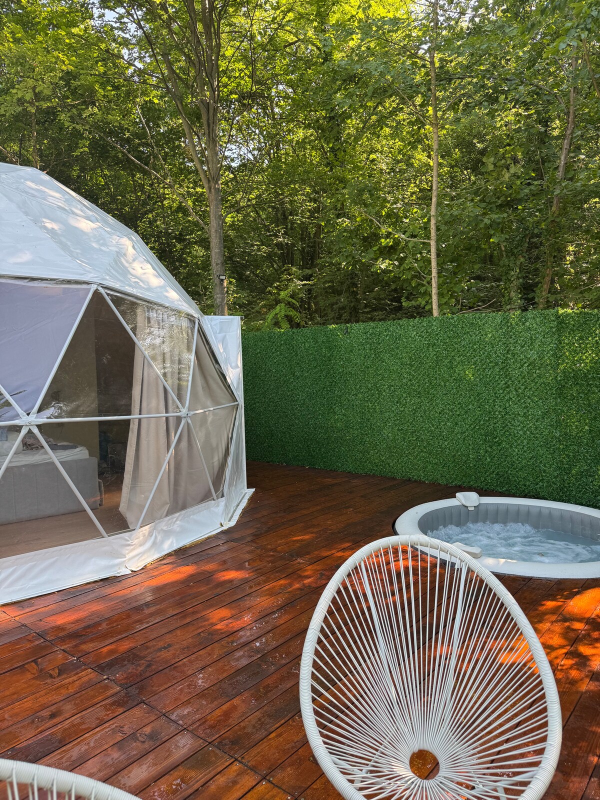 Pobjegnite od svakodnevice i prepustite se čarima prirode u našoj jedinstvenoj kupoli!Uživajte u potpunoj privatnosti okruženi šumom, uz sve udobnosti koje vam trebaju za savršen odmor. Jedinstveni smještaj:Prostrana i udobna kupola s panoramskim pogledom na prirodu. Potpuno opremljeno:Kupatilo s tušem, udoban krevet, prostor za sjedenje.Kamin:Stvorite romantičnu atmosferu uz pucketanje vatre. Roštilj:Pripremite ukusna jela na svježem zraku.Projektor:Opustite se uz omiljene filmove i serije.