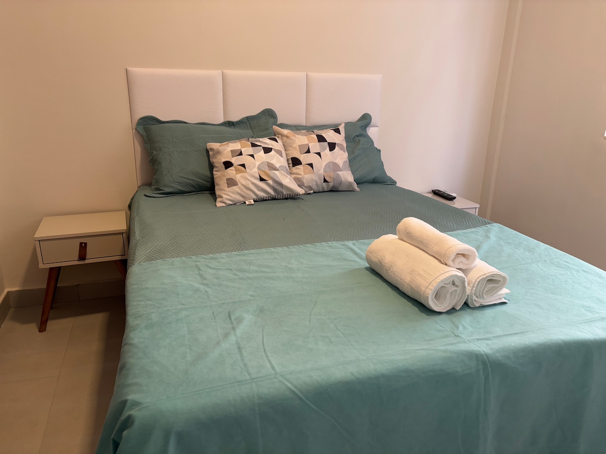 Spazio intero. L'appartamento è spazioso, accogliente, organizzato, ben ventilato e luminoso, con sole mattutino. Nella camera da letto è presente un letto matrimoniale (materasso super premium euro) e un ampio armadio. Il soggiorno è ampio, con tavolo da pranzo, divano letto (matrimoniale) e balcone con piante e amaca. La cucina è completa, fornita di tutti gli utensili necessari. Il bagno è stato ristrutturato e dispone di una doccia a 220v. La camera dispone di aria condizionata, ventilatore a soffitto e ventilatore portatile da terra.