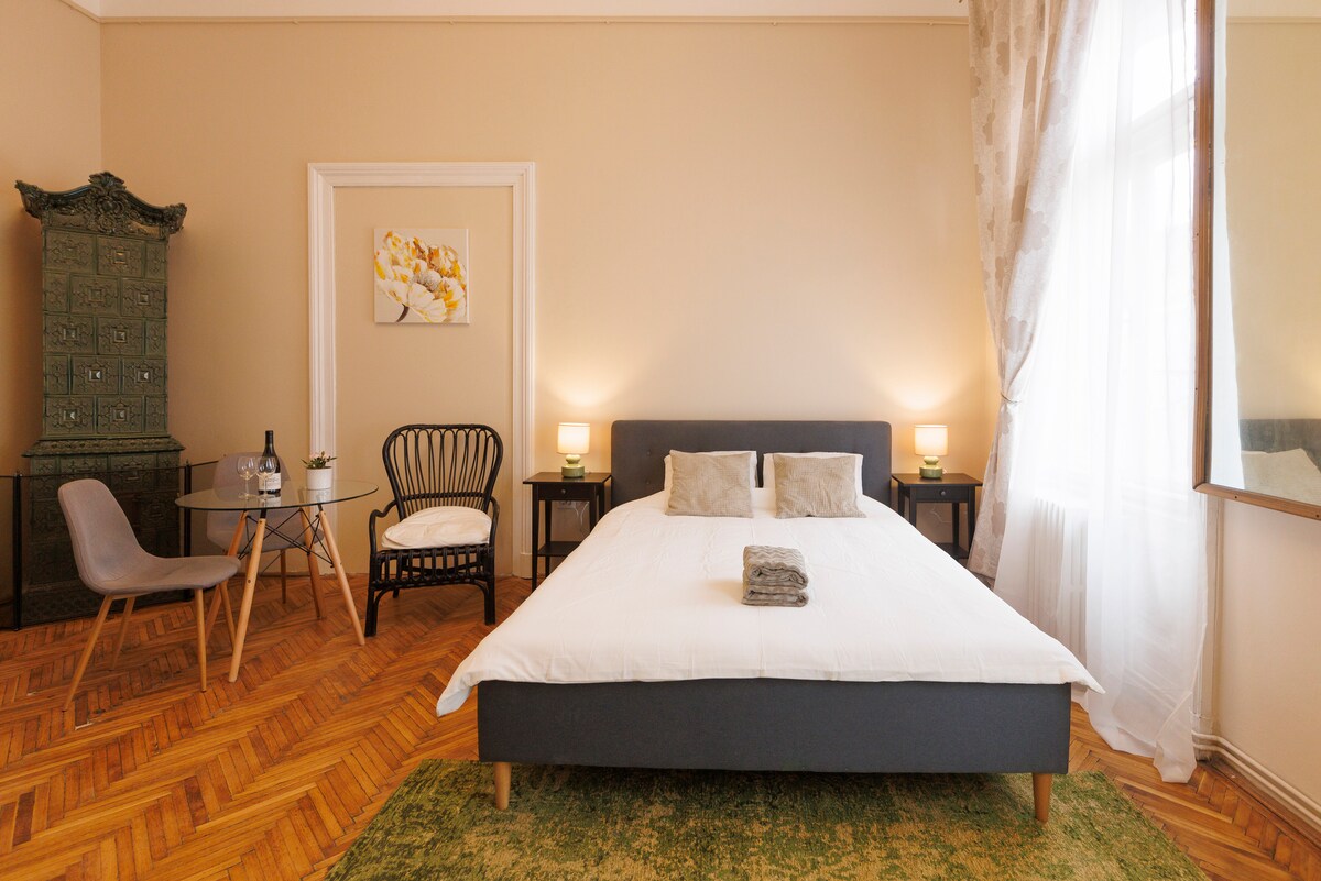 Il bilocale si trova in un edificio storico nel centro di Timisoara (Piazza Unirii) ed è stato ristrutturato nel 2017. La camera da letto ha un vero letto (160*200), mentre il divano nel soggiorno può ospitare anche due. L'appartamento è molto vicino a tutte le attrazioni della città: parchi, pub e club, arte e cultura e ristoranti. Tutto ciò che può essere di interesse per un visitatore si trova a 5 minuti a piedi.