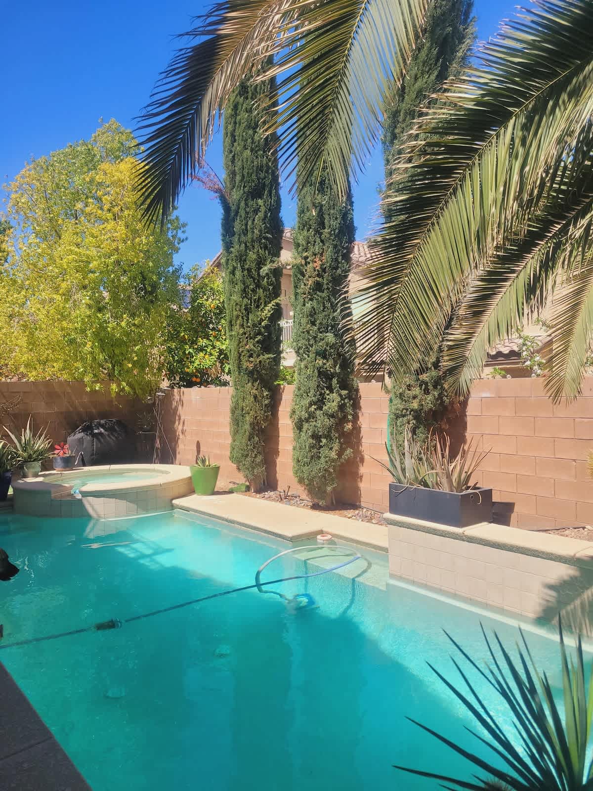 Spacious 3-bedroom house with a pool & Hot Tub, featuring a private backyard oasis perfect for relaxing under the sun. Fully stocked with plush towels, cotton sheets, quality mattresses, and all the kitchen utensils needed for any level of cooking. Just a 16-minute drive to the famous Las Vegas Strip, and close to convenience stores (supermarkets, restaurants), parks, and the Lakes neighborhood. Nestled in a quiet, safe neighborhood just minutes from Summerlin.