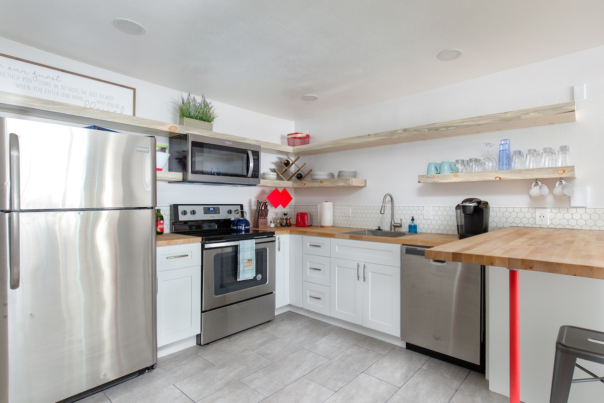 Goditi un'esperienza curata in questo moderno appartamento in stile cottage su due piani. Pavimenti riscaldati in bagno, lenzuola in puro lino, banconi in pietra ollare, opere d'arte originali: questo spazio è stato progettato in modo impeccabile per farti sentire a tuo agio e in alto. Offre servizi che vanno dal caffè Nespresso al mattino agli accappatoi soffici per rilassarsi a fine giornata. Situato in posizione centrale, il nostro alloggio è raggiungibile a piedi da tutto ciò che Boulder offre: il campus CU, Boulder Creek, Central Park, il mercato degli agricoltori, Pearl Street e tutti i migliori ristoranti del centro.