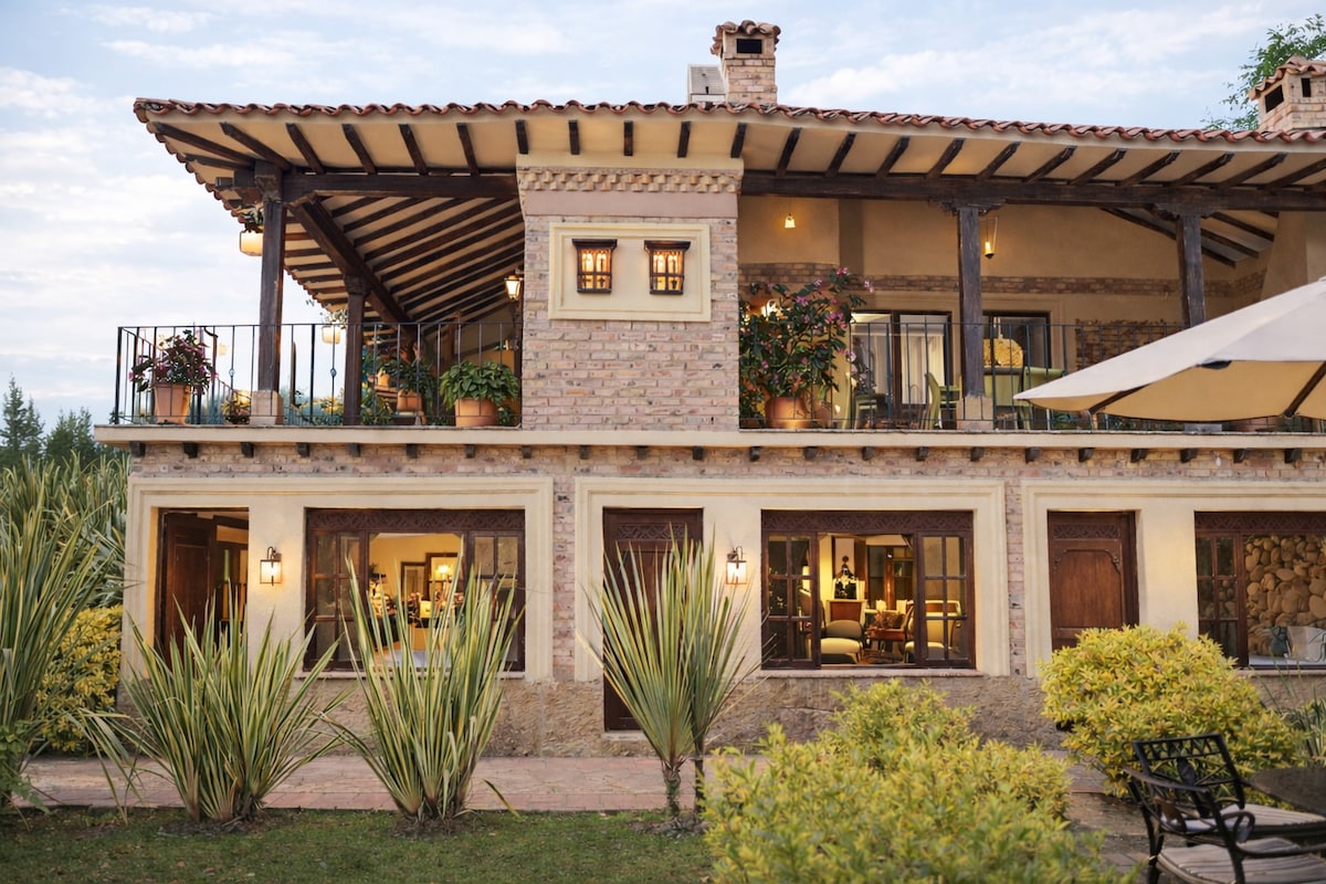 Looking for a unique stay in Villa de Leyva? Our splendid Grand Master Suite with private bathroom combines comfort + timeless elegance. Wake up to stunning sunrise views of the mountains in a cozy, top-notch room perfect for couples or family/friend groups up to 5 + breakfast included. Relax in the floating kiosk by the private lake, enjoy beautiful gardens, animals, basketball court & more. Available upon request: Lunch, BBQ, dinner by the fireplace, shuttles, laundry. NO PARTIES.
