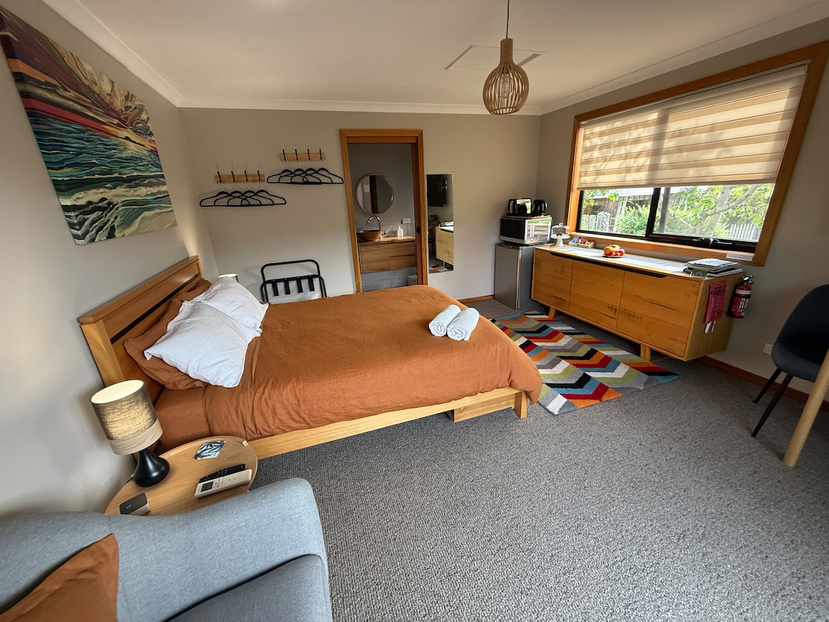 Just 10 mins from Launceston CBD, opposite Tamar Island Wetlands, this cozy escape is surrounded by native bush, beautiful garden and wildlife, boasting an outdoor spa with a fire pit and cedar sauna—set against breathtaking views. Inside features bespoke handcrafted furnishings and decors, with a focus on solid native timber that exudes warmth and character. Jaclyn studio is a labour of love, filled with natural textures & quality amenities for your relaxation, recreation, and revitalization.