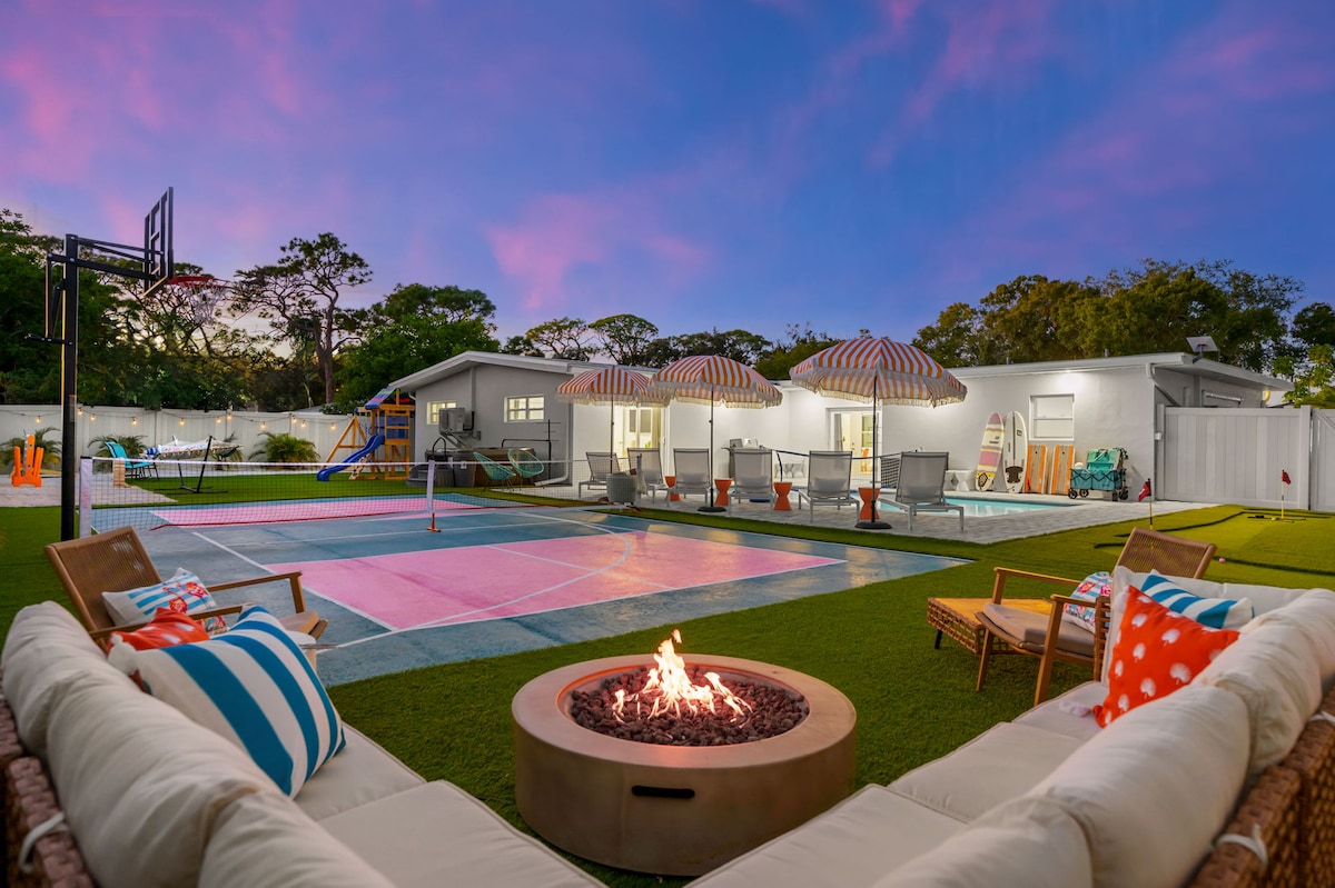 - PISCINA RISCALDATA GRATUITA, piscina privata - Campo da pickleball nel nostro cortile. - 2 letti king-size, divano letto queen-size, 2 letti a castello - Vicino a Anna Maria Island - 7,3 miglia da img Academy - Ampio cortile sul retro completamente recintato - Barbecue - TV all'aperto - Corn toss - Ping Pong - Giochi da tavolo - Tavolo da pranzo all'aperto - 1,6 km dalla Robinson Preserve: noleggio kayak, escursioni nella natura, corsa e parchi giochi - Sedie da spiaggia, teli mare, borsa frigo, ombrellone incluso. - lettino da viaggio, seggiolone - Smart TV in ogni stanza