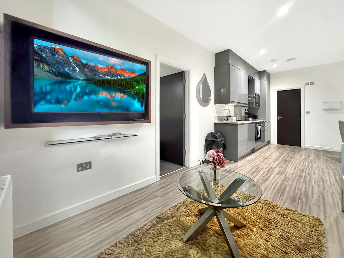 Ti diamo il benvenuto nella tua vacanza perfetta nel centro di Milton Keynes! Scopri il mix ideale di comfort e comodità nel nostro spazioso appartamento con 2 camere da letto e 2 bagni, perfettamente situato a soli cinque minuti a piedi dalla stazione ferroviaria di Milton Keynes. Che tu sia in visita per lavoro, per piacere o per una vacanza in famiglia, il nostro moderno rifugio offre tutto il necessario per un soggiorno indimenticabile. Entrando nell'appartamento, sarai accolto da un soggiorno luminoso e arioso con un'atmosfera davvero moderna