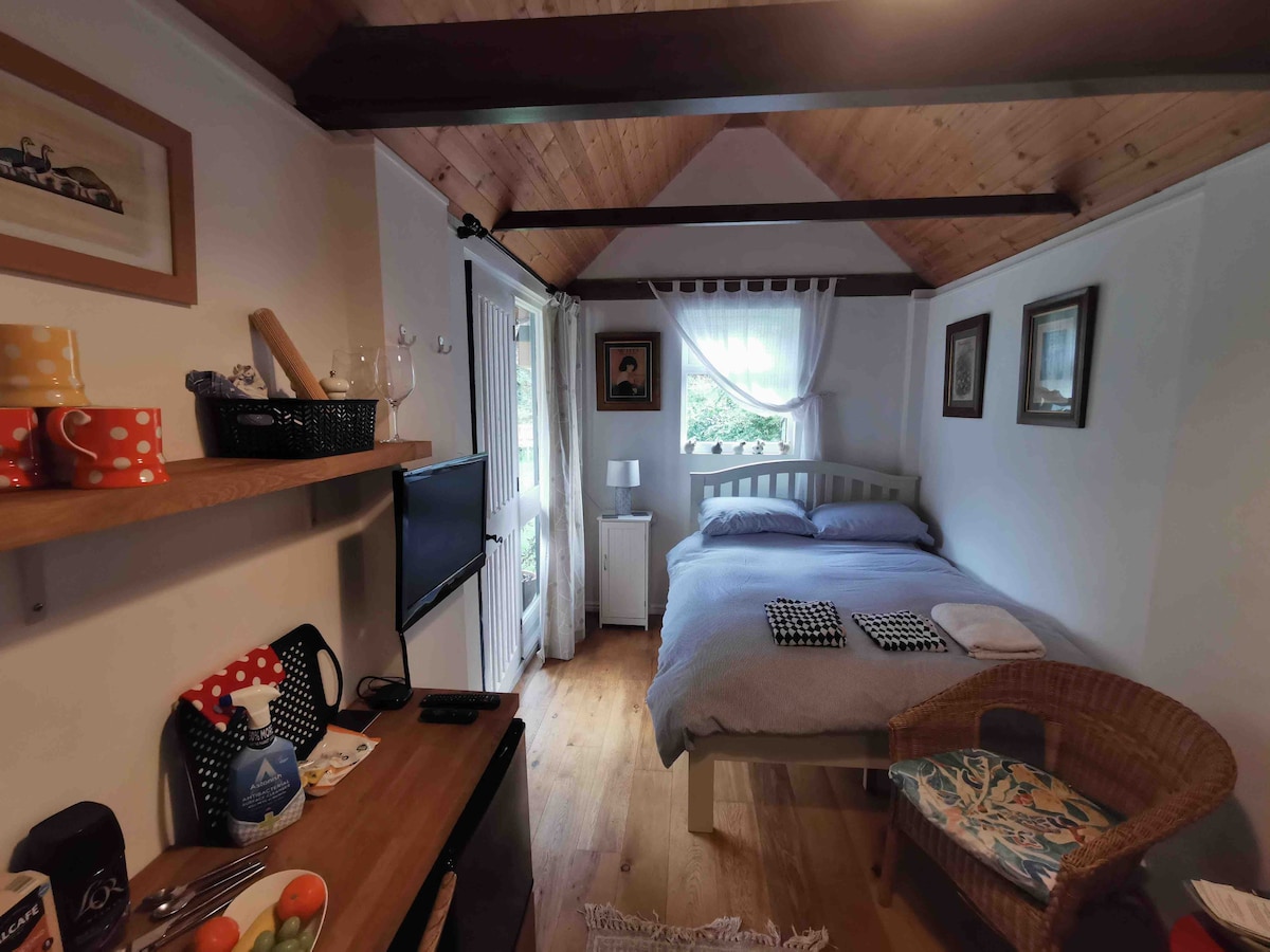 Questo rustico appartamento indipendente si trova sopra un deposito per carri. Accessibile da gradini (sono piuttosto ripidi quindi probabilmente non adatti a persone infermi), si tratta di una grande stanza con un letto matrimoniale grande, una graziosa stufa a legna (a legna inclusa), una zona cucina ben attrezzata con tavolo da pranzo e sedie, un divano e una grande TV/dvd/radio/cd. C'è una piccola doccia alla fine. Ci sono una selezione di DVD e riviste per il vostro uso. Non c'è il wifi.