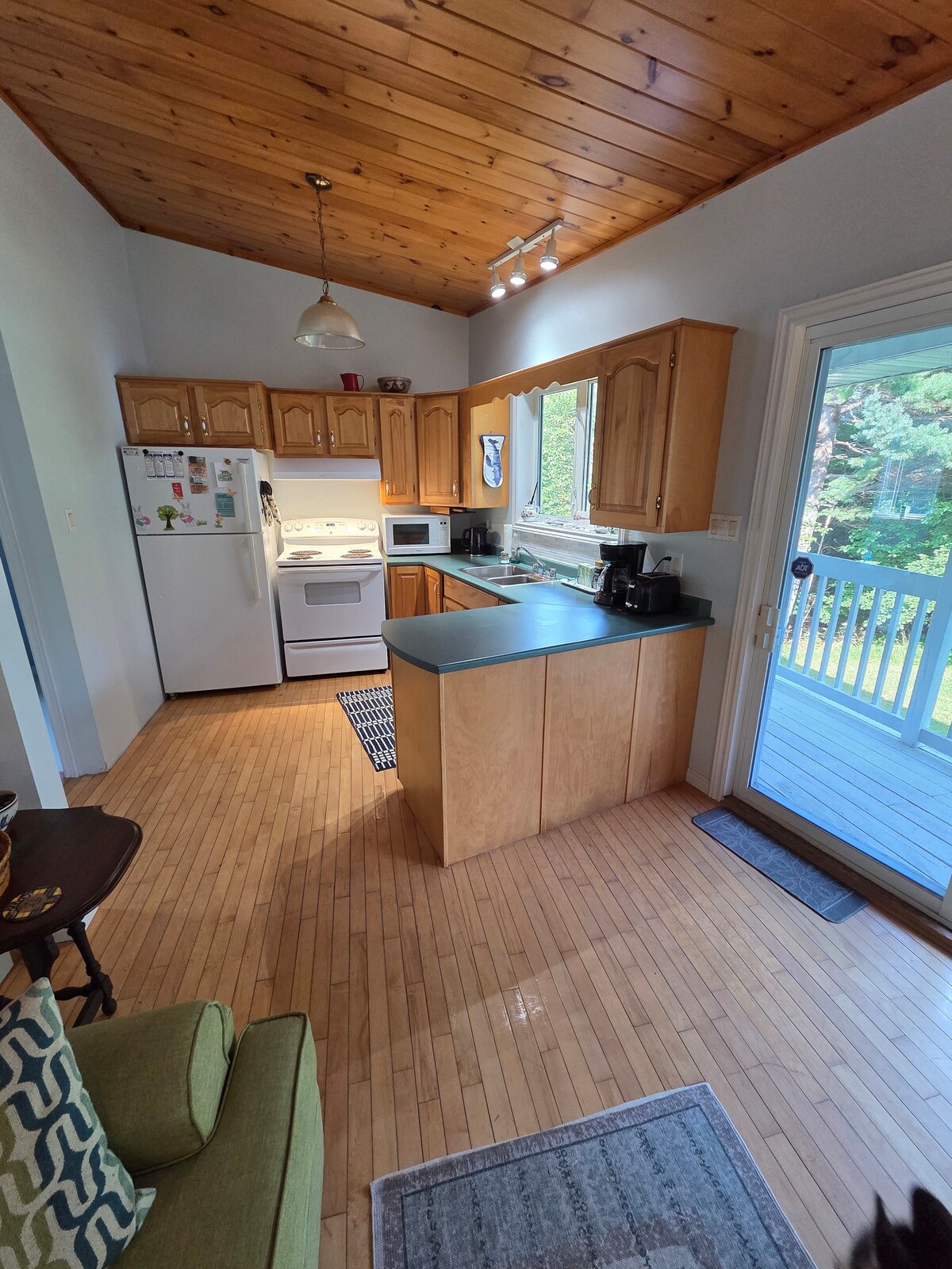Questo cottage con 2 camere da letto ha un cortile privato e una veranda. 2 piccole camere da letto hanno entrambe letti queen-size e comò, soggiorno completo, cucina completamente attrezzata (basta portare cibo/caffè). Bagno completo con doccia walk-in. Barbecue privato. WIFI Starlink VELOCE, shampoo, saponi forniti. Cani al guinzaglio: nessun problema! 🐕 😊 Il vialetto è ripido ma ben tenuto in tutte le stagioni. Ci dispiace, non sono ammesse motociclette. PRENOTAZIONI INVERNALI: pneumatici da neve e AWD necessari per il vialetto, ma è sempre spazzato e sabbiato.