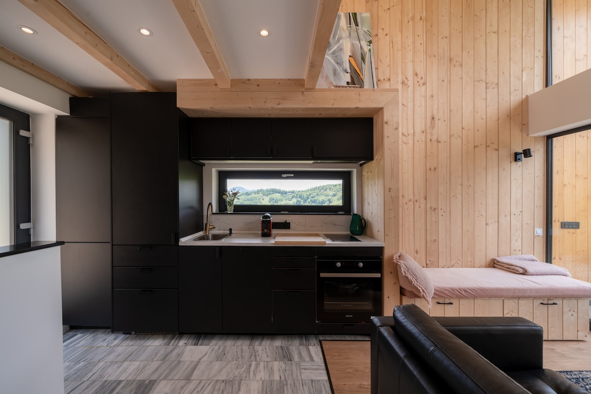 A uniquely and carefully designed, this apartment perfectly combines coziness with stunning Scandinavian accents. Situated in a new residential neighborhood, we go above and beyond to ensure a unique experience for our guests. Our home can accommodate up to 4 people and has its parking lot. The standout feature of this penthouse is the spacious terrace with a jacuzzi and a panoramic view over the mountains, being ideal for couples, business travelers, solo adventurers, or families (with kids).