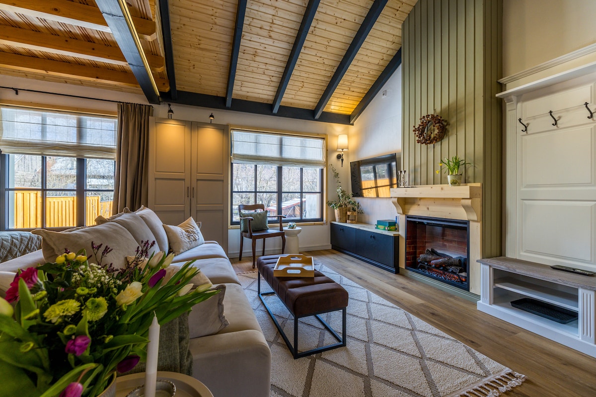 A uniquely and carefully designed, this apartment perfectly combines coziness with stunning Scandinavian accents. Situated in a new residential neighborhood, we go above and beyond to ensure a unique experience for our guests. Our home can accommodate up to 6 people and has its parking lot. The standout feature of this penthouse is the spacious terrace with a jacuzzi and a panoramic view over the mountains, being ideal for couples, business travelers, solo adventurers, or families (with kids)
