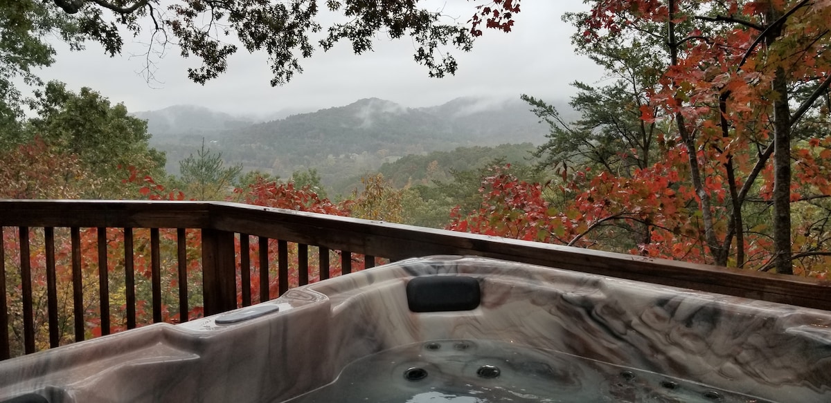 Cabina mozzafiato vista montagna tutto l'anno con un ambiente privato sul lato della montagna. 2 camere da letto con una grande pianta a pianta aperta con caminetto a legna e un'ampia zona loft con 2 letti . La baita ha un ampio portico schermato con terrazza aperta adiacente per godersi la vista mozzafiato mentre ci si rilassa nella vasca idromassaggio. Nelle vicinanze si possono fare escursioni, tubing, pesca, visitare il lago Nottley, il lago Chatuge o passeggiare per Helen o Blue Ridge. Le opzioni e le viste sono infinite. Licenza UCSTR n. 028724