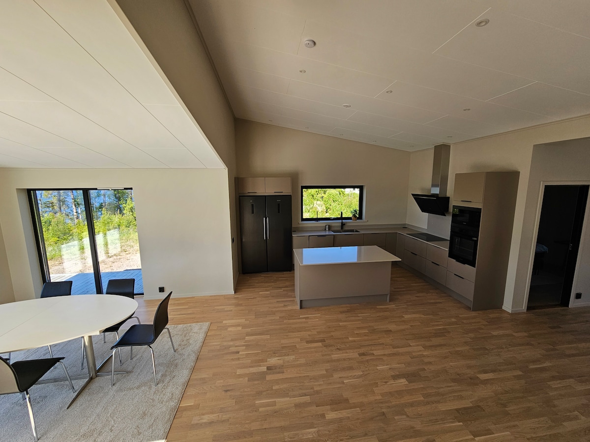 Casa di nuova costruzione (2016) situata proprio accanto all'acqua. Loft di 40 mq+ 20 m ² e 12 m ² di spazio esterno (non isolato in inverno) La casa è molto luminosa e fresca, e ha una vista incredibile. C'è una camera da letto con un letto matrimoniale e un bagno con doccia e lavatrice. C'è un soppalco con 3 x 90 letti. C'è la possibilità di prendere in prestito una culla per bambini. 1 miglio dal centro di Karlskoga, dove ci sono ristoranti e negozi. Negozio di alimentari più vicino a 4 km Nel soggiorno/cucina si può godere il panorama ma anche rilassarsi seduti davanti al camino
