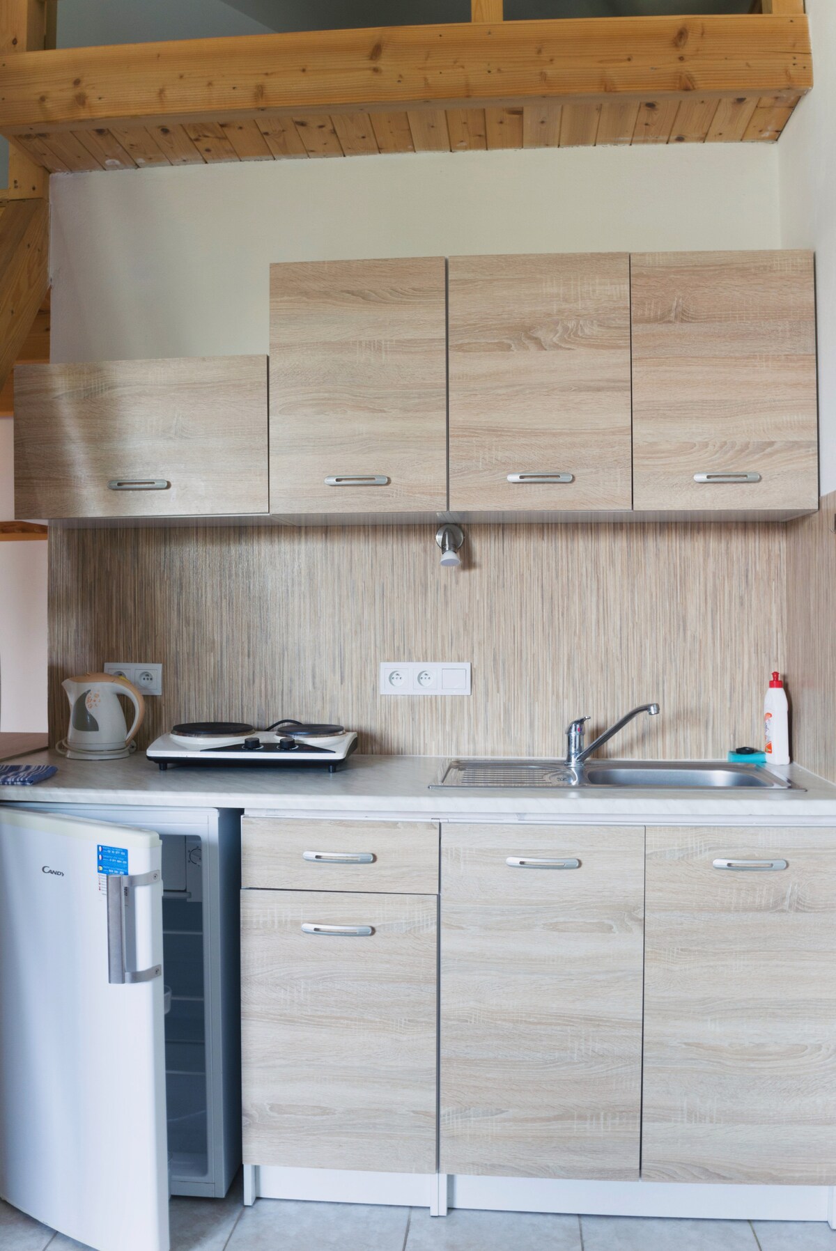 Un appartamento accogliente e arioso con un letto matrimoniale e un angolo cottura, una zona pranzo e un bagno privato. Gli altri letti sono a forma di materasso su una galleria di legno sotto il soffitto. Adatto per viaggi sia per due che per piccoli viaggi in famiglia. L'alloggio si trova sopra la cantina e vicino a diverse piste ciclabili e sentieri inline. Seduto di fronte all'alloggio adatto per il barbecue serale.