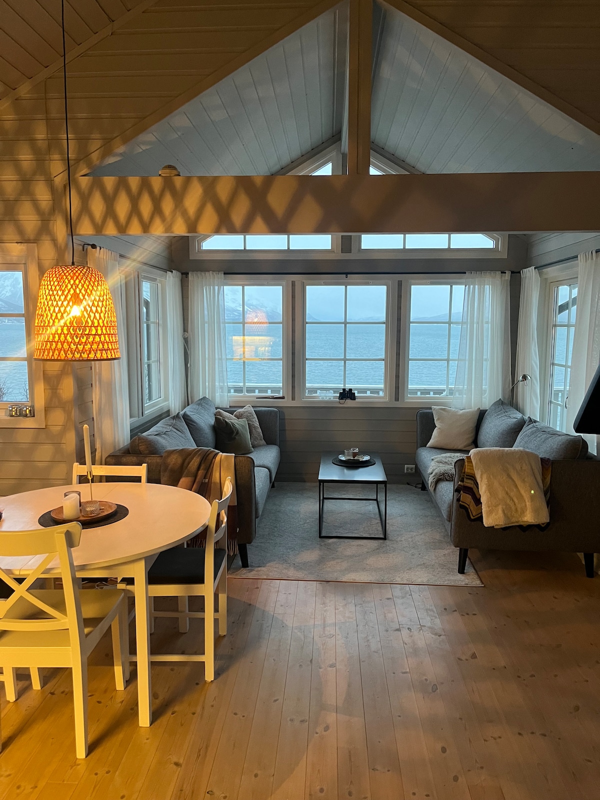 Bella e rustica casa sul mare in campagna a 1 ora di auto dalla città di Tromsø. La zona è ideale per escursioni, sci, pesca con il sole di mezzanotte in estate e l'aurora boreale in inverno. Nel soggiorno è inclusa una sauna a legna sul mare con un camino e un'accogliente zona relax interna, con un costo di 250 NOK per ogni sacco di legna da ardere utilizzato per riscaldare queste strutture. Per preparare e riempire la vasca idromassaggio da utilizzare durante il soggiorno, addebitiamo un costo di 2000 NOK,-