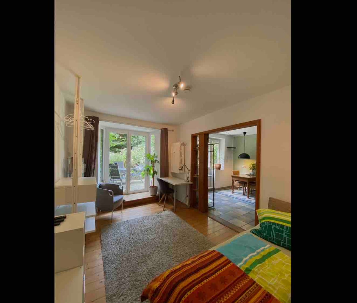 Dieses abgeschlossene Apartment ( ca. 20 m² ) liegt im Erdgeschoss unseres Hauses zum Hinterhof . Im Zimmer befindet sich ein großes gemütliches Doppelbett ( 180 x 200 ) und eine Sitzecke. Im Flur zum allein genutzten Badezimmer, steht eine gut ausgestattete Küchenzeile mit Kühlschrank, Herd und Backofen. Unser Haus liegt in Fußgänger Entfernung ( 5 min ) zur Innenstadt mit allen Sehenswürdigkeiten, und 10 min. zu Fuß vom Hauptbahnhof.