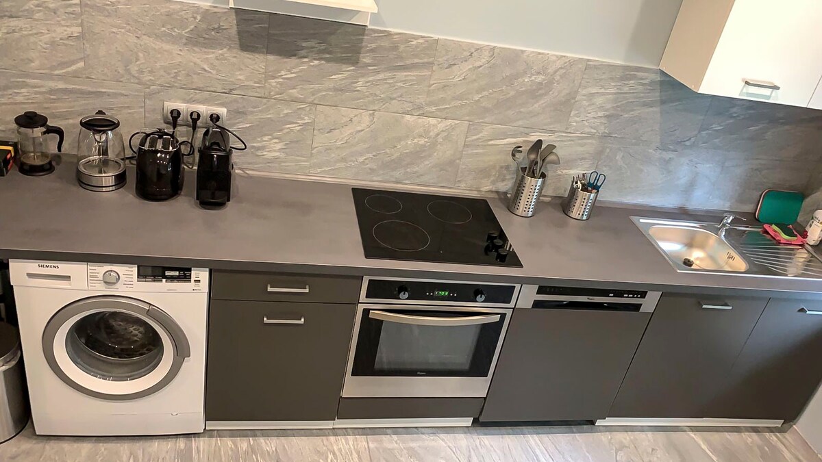 Goditi un'esperienza elegante in questo alloggio in posizione centrale. L'appartamento di lusso di 54 metri quadrati si trova al piano terra di un condominio. Una camera da letto (2 letti singoli) e soggiorno con divano letto (come letto matrimoniale), una cucina con tutti i beni di prima necessità, un bagno con doccia, lavabo e wc. Appartamento per non fumatori.