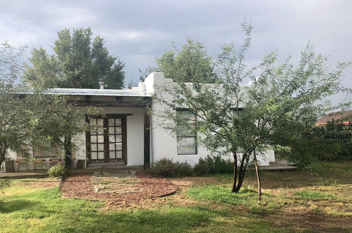 Questa dolce casa in adobe degli anni '50 è immersa in un giardino di alberi da frutto e piante grasse. Un patio privato ha una ramada (patio coperto) ed è perfetto per mangiare all'aperto, barbecue e osservazione delle stelle. La casa è stata ristrutturata con cura e mantenuta dai miei genitori per 25 anni. Splendidi pavimenti piastrellati, arredi e tocchi esterni riflettono il loro amore per il Messico. Marathon è una città eclettica e rurale nel cuore del bacino della Maratona e un luogo ideale per esplorare la regione, che si tratti di Big Bend, Ft. Davis o Marfa.