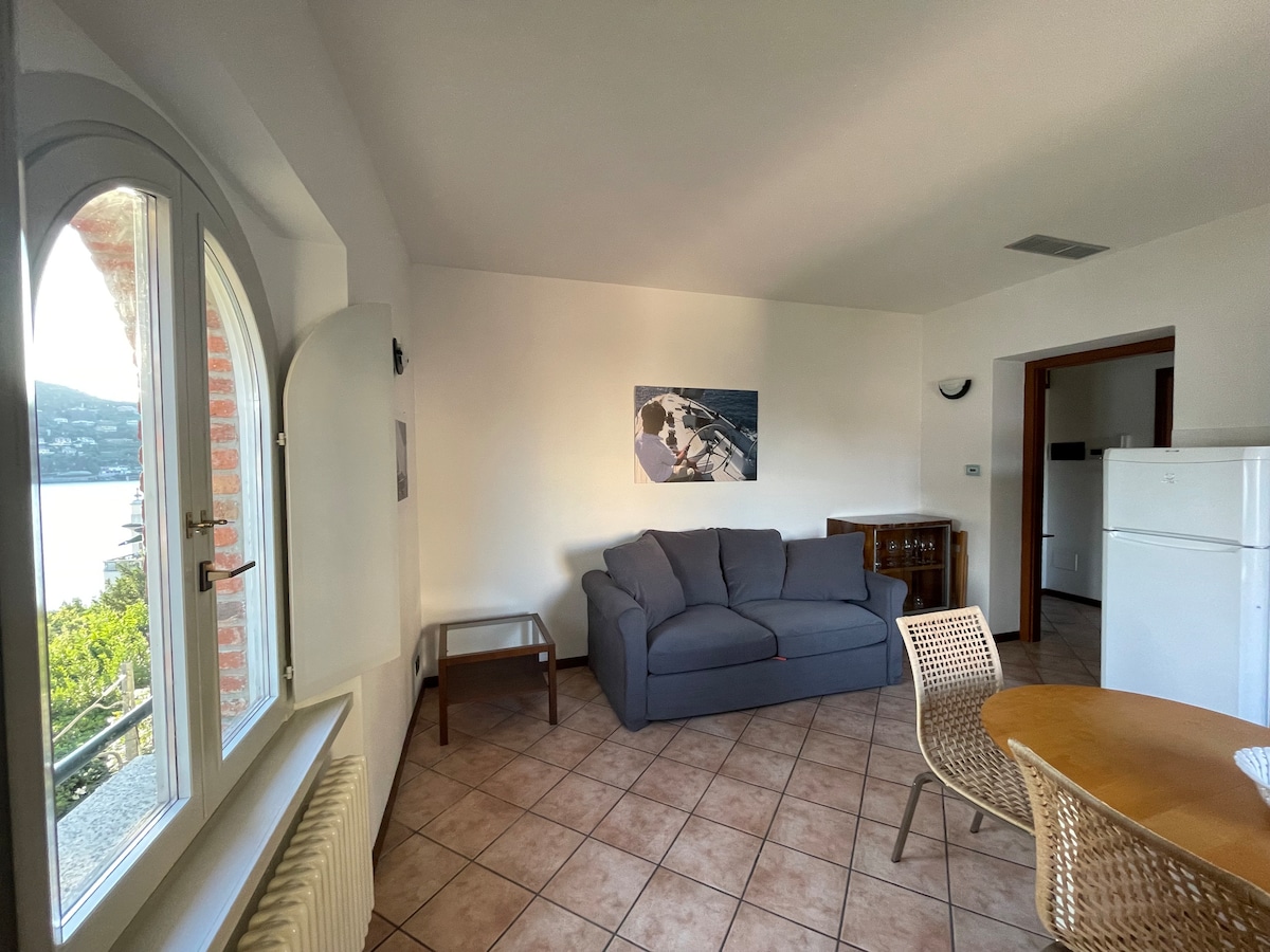 Codice Identificativo Nazionale: IT013145C2D6NO4CMY. La casa è situata In posizione soleggiata, a 300 metri dal centro paese, fermata bus e ferry area. Per raggiungerla a piedi, ci sono circa 150mt. in leggera salita di cui gli ultimi 50mt. senza marciapiede. Gode di un'incantevole vista lago, paese e montagne circostanti. E' circondata da un piccolo giardino recintato. L'appartamento, ben equipaggiato, dispone di: aria condizionata, parcheggio, WiFi e TV sat .