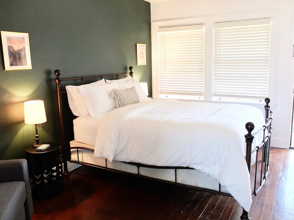 Goditi una camera d'albergo privata e vintage, situata proprio accanto alla storica striscia del centro della nostra rustica città della corsa all'oro, Mariposa. A pochi passi dai migliori ristoranti e negozi affascinanti, ma a solo 1 ora di auto dalle incredibili vette e cupole della Yosemite Valley, questa è la destinazione perfetta per gli appassionati di storia ed esploratori (che amano una doccia calda, un letto comodo e Netflix!) La camera è stata recentemente rinnovata, ma conserva ancora tanti elementi vintage originali risalenti a quando è stata costruita nel 1938!