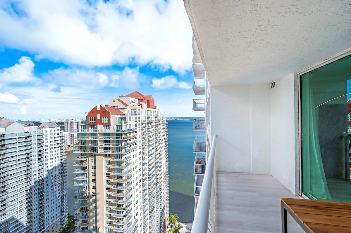 Moderno appartamento al 39° piano a Brickell | 4 posti letto + ufficio