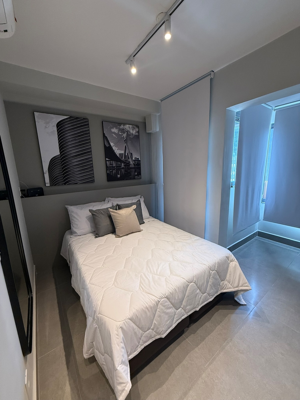 Enjoy a brand-new, modern, and beautifully decorated apartment with a stunning view. Instead of a cramped studio, you’ll have separate spaces that accommodate up to 4 guests. Conveniently located next to the Brooklin station and close to Moema, Pinheiros, Berrini, the U.S. Embassy, and Congonhas Airport, in a quiet and safe street. The building offers amenities like a gym, pool, sauna, and coworking space, as well as excellent restaurants, a supermarket, and a pharmacy right at your doorstep.