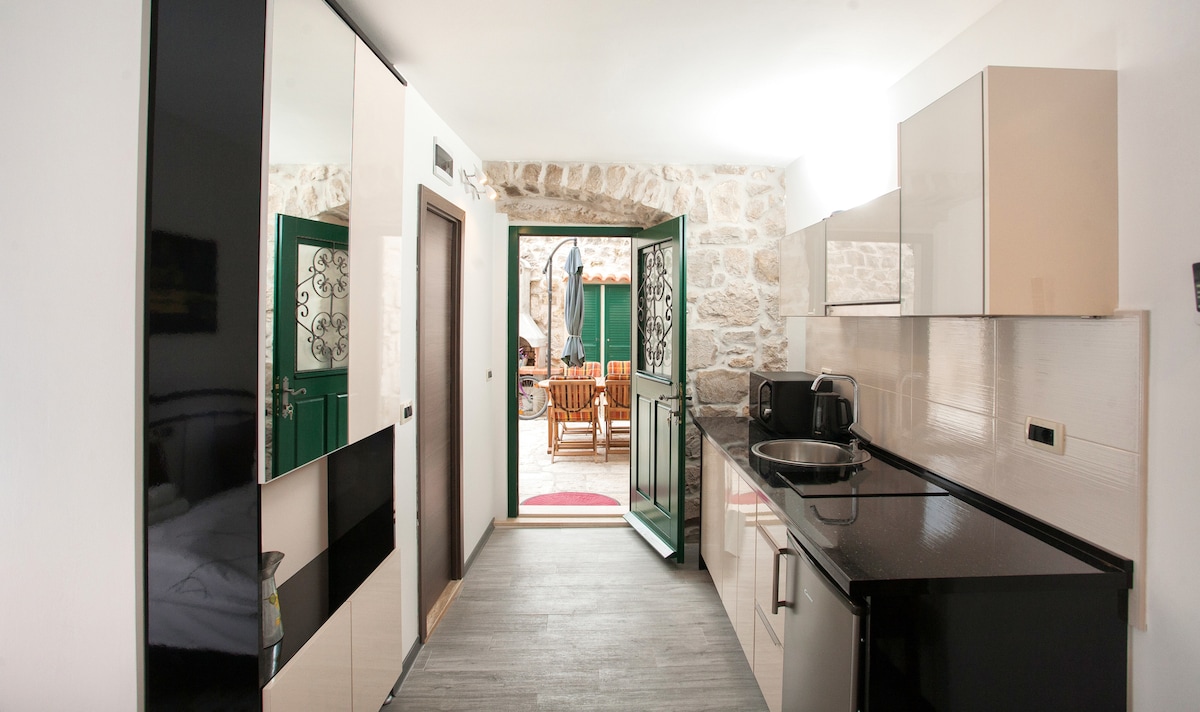 Apartment on the second floor of a newly renovated 600 year old house. It is located 200 meters from the Golden gate (main entrance of the ancient Roman palace). You can take a 15 minute walk to the nearest beache or you could also take a bus. The famouse park-forest Marjan is also near by. There is more than enough restaurants and bars not even a minute or two away! If you are looking for good time, or some peace and quiet, here You will definitely find both!